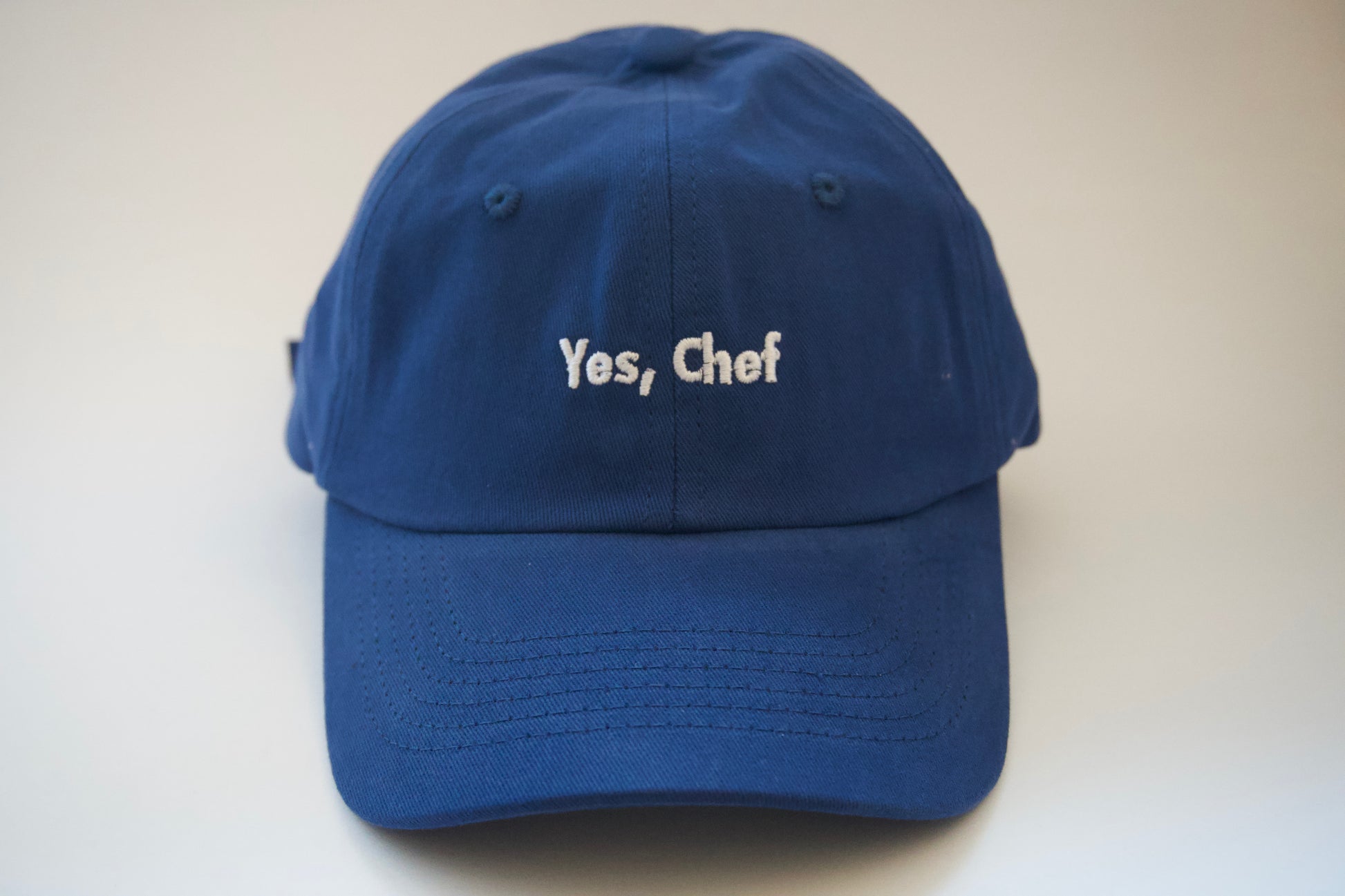 This embroidered cap is a little nod to professional kitchens — the chaos, the camaraderie, the craft — and the universal respect behind the phrase: “Yes, Chef.”